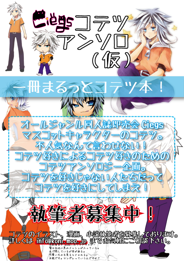コテツアンソロジー(仮)執筆者募集! ×[PR]上記の広告は3ヶ月以上新規記事投稿のないブログに表示されています。新しい記事を書く事で広告が消えます。 コメント ただいまコメントを受けつけておりません。 コテツアンソロジー(仮)執筆者募集! ただのイラスト集には興味ありません。主催の無理難題に応えられる覚悟のあるツワモノコテツスキーさんをお待ちしております!ちょっとでも大変でも無理して面白いアンソロジーを一緒に作りませんか?アンソロについて企画案を多数ご用意しております。お好きな企画を選んで頂いてもOK、コチラから指定させていただいてもOK!ご無理の無い程度に気軽に企画へ挑戦していただければ幸いです。まずはメールにてお問合わせ下さい。 PR コメント ただいまコメントを受けつけておりません。