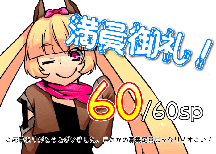 おかげさまでご応募頂いたサークルさん全ての申込手続きが完了致しまして無事60sp満員御礼でのCiegs2014開催が確定いたしました!