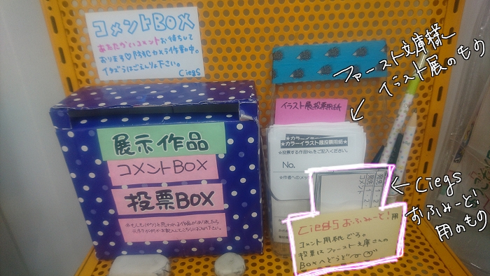 1週間ほどファー文様のイラスト展と被っててちょっと分かりにくいのですがCiegsのコメント用紙は2種類のうち小さい方です。