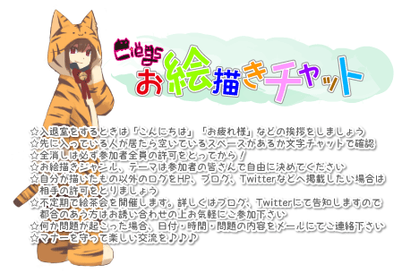 お絵描きチャット設置 ×[PR]上記の広告は3ヶ月以上新規記事投稿のないブログに表示されています。新しい記事を書く事で広告が消えます。 コメント ただいまコメントを受けつけておりません。 お絵描きチャット設置 トップページに何か増えましたねそうですお絵描きチャットです!注意事項などはホント最低限のことだけ書きましたチャットに参加したことがない、チャットには慣れているけどお絵描きチャットは初めて、という方は一度お絵描きチャットの仕組みを調べてみたほうがトラブルは少ないかと思います絵茶会については企画立ち次第ブログにて詳しいことはご連絡致します~! PR コメント ただいまコメントを受けつけておりません。